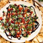 Bruschetta Dip is a creamy, flavorful blend inspired by the traditional Italian bruschetta. It typically includes ingredients such as tomatoes, soft cheese, fresh herbs, and a drizzle of balsamic glaze, served as a dip with pita chips, crackers, or sliced baguette. This versatile dip can be tailored to various tastes, making it a crowd-pleaser at gatherings, parties, or casual evenings at home.