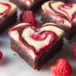 Decadent heart-shaped brownies with a luscious raspberry swirl and a creamy cheesecake layer, perfect for celebrations.
